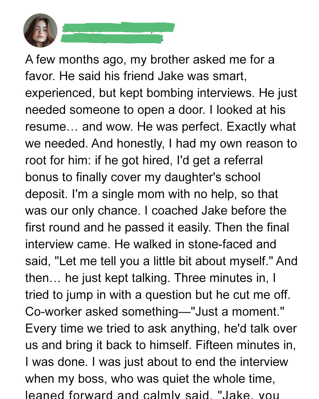 My Brother Begged Me to Help His Friend Get a Job – but During the Interview, He Wouldn’t Stop Talking, and I Was About to End It When My Boss Stepped In