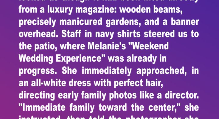 Melanie materialized beside us like she’d been waiting in the wings, champagne flute in one perfectly manicured hand.