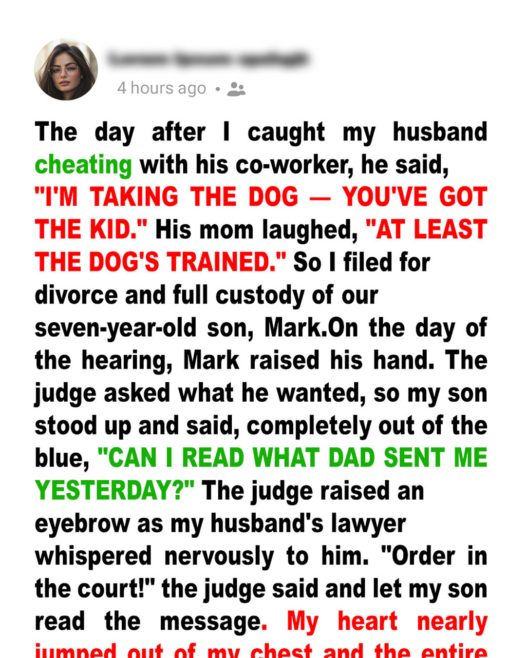 “Mark,” he read. “You need to tell the judge you want to live with me and Grandma, or I’ll make sure Mom loses the house. She’ll live on the street, buddy.”