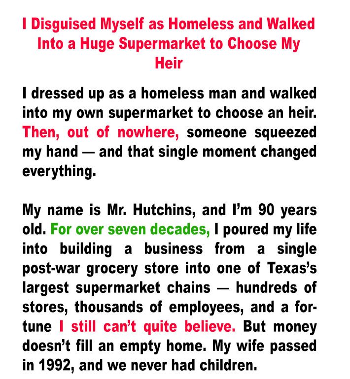 At 90 years old, I disguised myself as a homeless man and walked into one of my own supermarkets — just to see who would treat me like a human being. What I discovered shattered me… and changed everything.