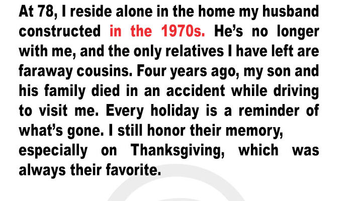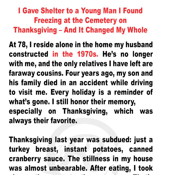 I’m 78, and I’ve spent four Thanksgivings alone after losing my family. Last year, I found a shivering young man stranded at the cemetery. I brought him home to warm up. But when I woke up at midnight to footsteps and saw him standing in my doorway, I feared I might’ve made a terrible mistake.