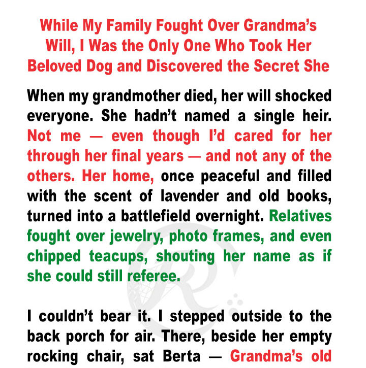When Grandma passed away, my relatives rushed to her house, desperate to find her will. I was the only one who took her old dog home, not knowing she carried more than memories of Grandma. Days later, I discovered the secret Grandma had hidden where no one else would think to look.