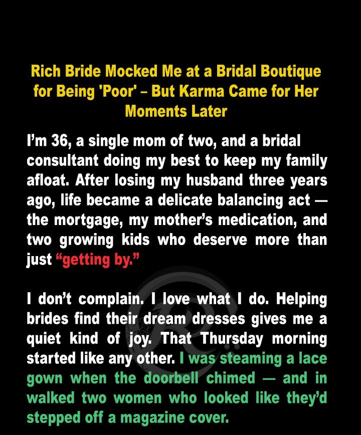 Rich Bride Mocked Me at a Bridal Boutique for Being ‘Poor’ – But Karma Came for Her Moments Later