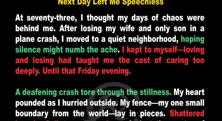 I spent years hiding from the world until a reckless neighbor shattered my fence and my solitude in one loud crash. What followed wasn’t anger or revenge, but something that changed my life in ways I never expected.