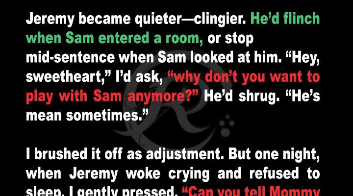 Alice’s son had always been a happy child, but lately, he would shrink away whenever her new husband, Sam, walked into the room. At first, she brushed it off as fussiness. But then, her son told her something about Sam that sent a shiver down her spine.