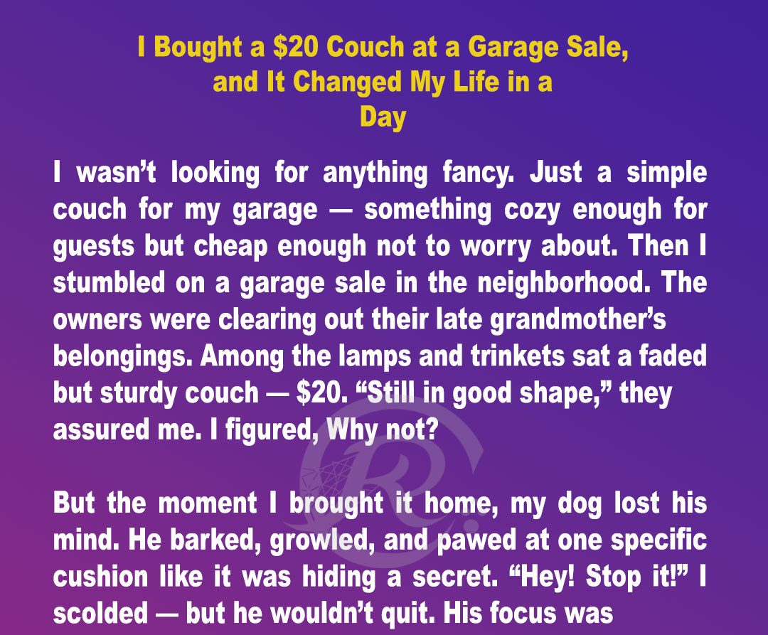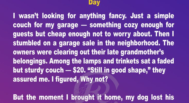 The moment I set the couch in the garage, my dog, Wasabi, lost his mind. He barked like a lunatic, darting around the room before zeroing in on one specific spot on the couch.