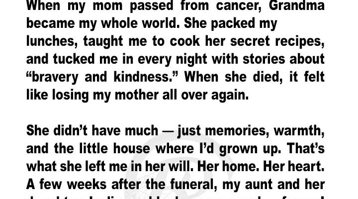 When Gran passed away last spring, I didn’t cry at the funeral. I didn’t need to. I’d already cried all the tears I had during her final weeks in hospice. When the lawyer handed me the will and I saw that she’d left me the house, I didn’t feel shocked. Just a quiet kind of heartbreak. The kind that lingers.