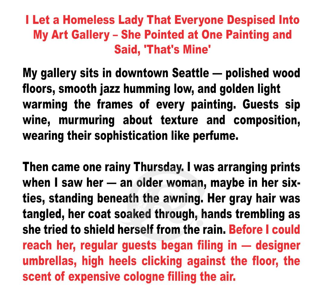 I Let a Homeless Lady That Everyone Despised Into My Art Gallery – She Pointed at One Painting and Said, ‘That’s Mine’