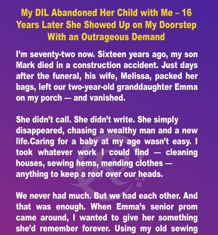 My DIL Abandoned Her Child with Me – 16 Years Later She Showed Up on My Doorstep With an Outrageous Demand