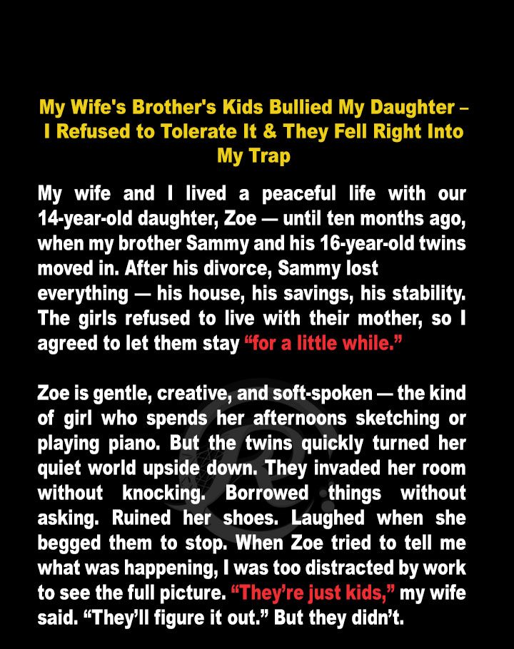 There were the twins barging into Zoey’s room when she wasn’t home, tossing her belongings around like they were shopping in a department store. I watched Olivia hold up Zoey’s favorite dress and mock her taste while Sloane rifled through her desk drawers. They found her private journal and took turns reading entries aloud in cruel, exaggerated voices before tossing it carelessly on the floor.