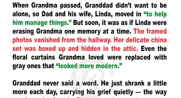 After Grandma’s funeral, my dad and my stepmom, Linda, moved into my granddad’s house. Dad said it was to help Granddad manage things, and at first, I tried to believe that.