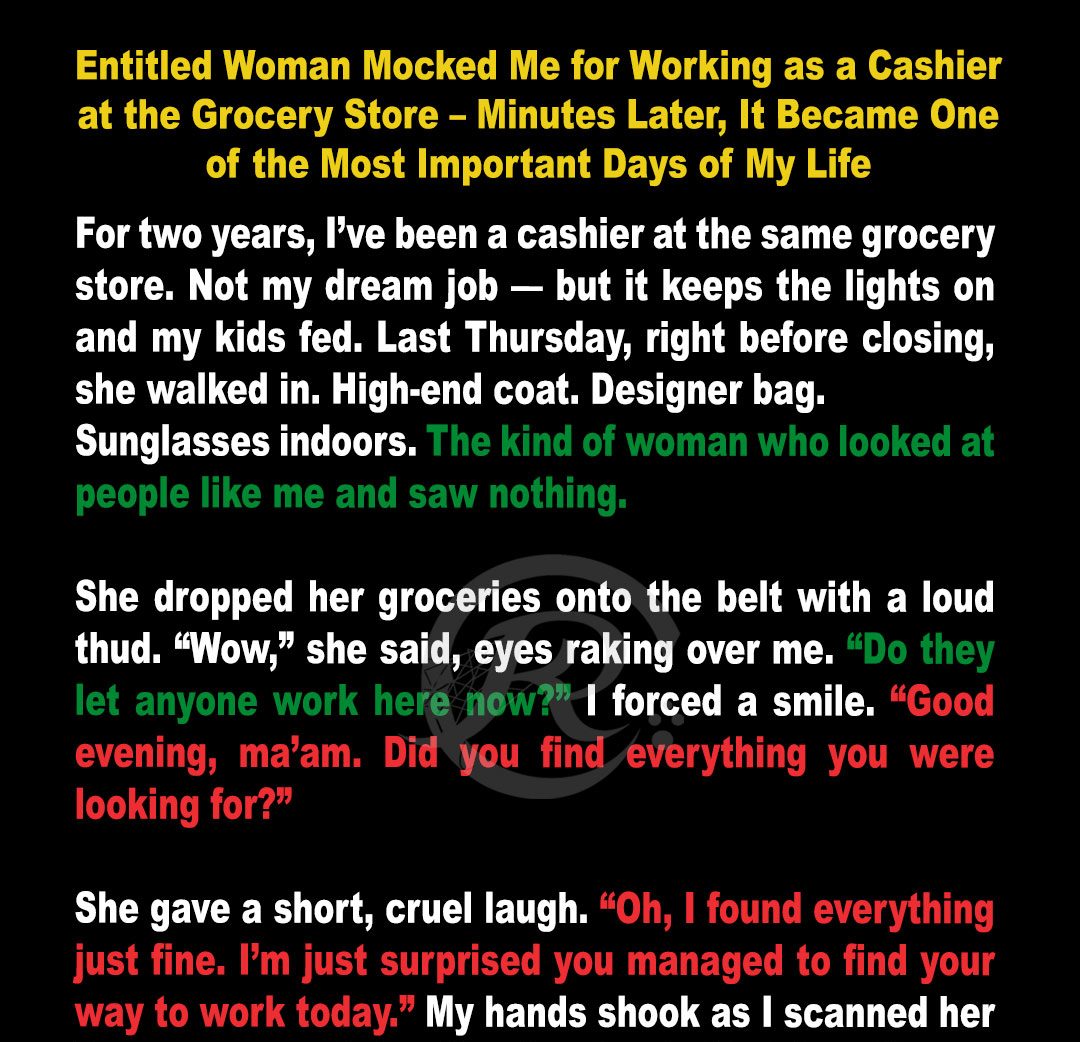 Entitled Woman Mocked Me for Working as a Cashier at the Grocery Store – Minutes Later, It Became One of the Most Important Days of My Life