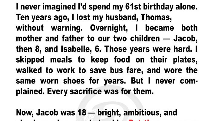 That 61st birthday, the one I thought I’d spend entirely alone with just a cupcake and my regrets, became a turning point in all our lives. It was a powerful reminder that sacrifices, no matter how quietly made, are never truly invisible. Someone always sees. Someone always knows.