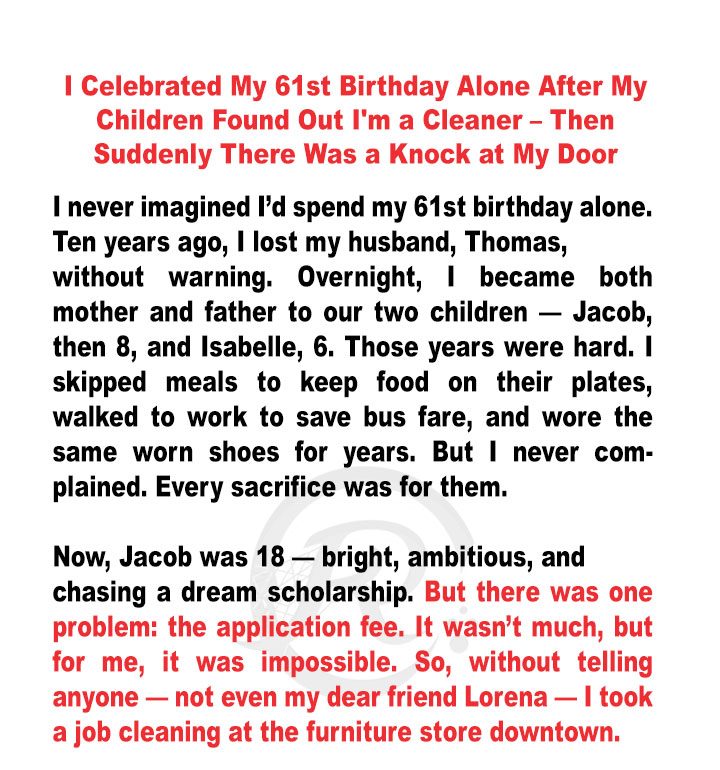 I sat alone on my birthday with a store-bought cupcake, wondering how the children I’d sacrificed everything for could turn their backs on me. Then came that knock at the door. What happened next showed me that some secrets, when finally revealed, can either destroy a family or save it.