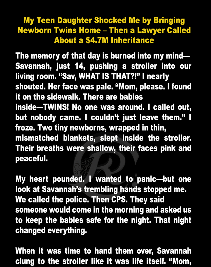 When my 14-year-old daughter came home from school carrying a stroller with two newborn babies inside, I thought that was the most shocking moment of my life. Ten years later, a lawyer’s phone call about millions of dollars would prove me completely wrong.