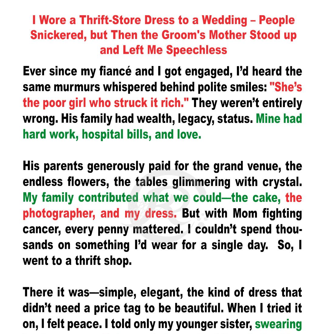 I knew some people would judge me for wearing a thrift store dress to my wedding, but I never expected my mother-in-law to stand up in the middle of the ceremony and bring the entire room to a standstill.
