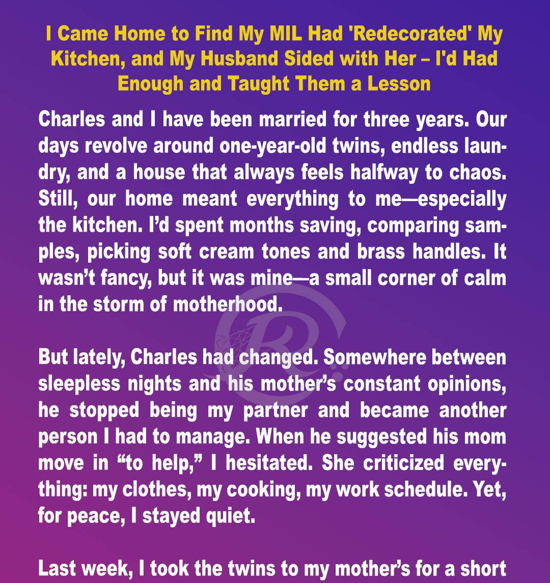 When I came home after a long week away, I expected to find peace. Instead, I found my kitchen drowning in bubblegum-pink paint and floral wallpaper. My mother-in-law was standing in the middle of it all, beaming with pride. But what broke me wasn’t the ruined room. It was my husband’s reaction.