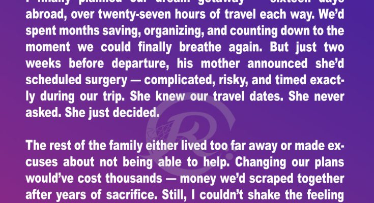 “We can’t reschedule,” I finally said. “The cancellation fees alone would eat half our savings. And the airline’s not going to refund international tickets two days before departure.”