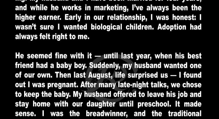 “I mean, we can get a divorce,” I said plainly. “You’ll be a single dad, and I’ll pay child support. But you can’t make me take on the responsibility that you agreed to handle. I’ve worked too hard to get where I am, and I won’t let you derail my career.”