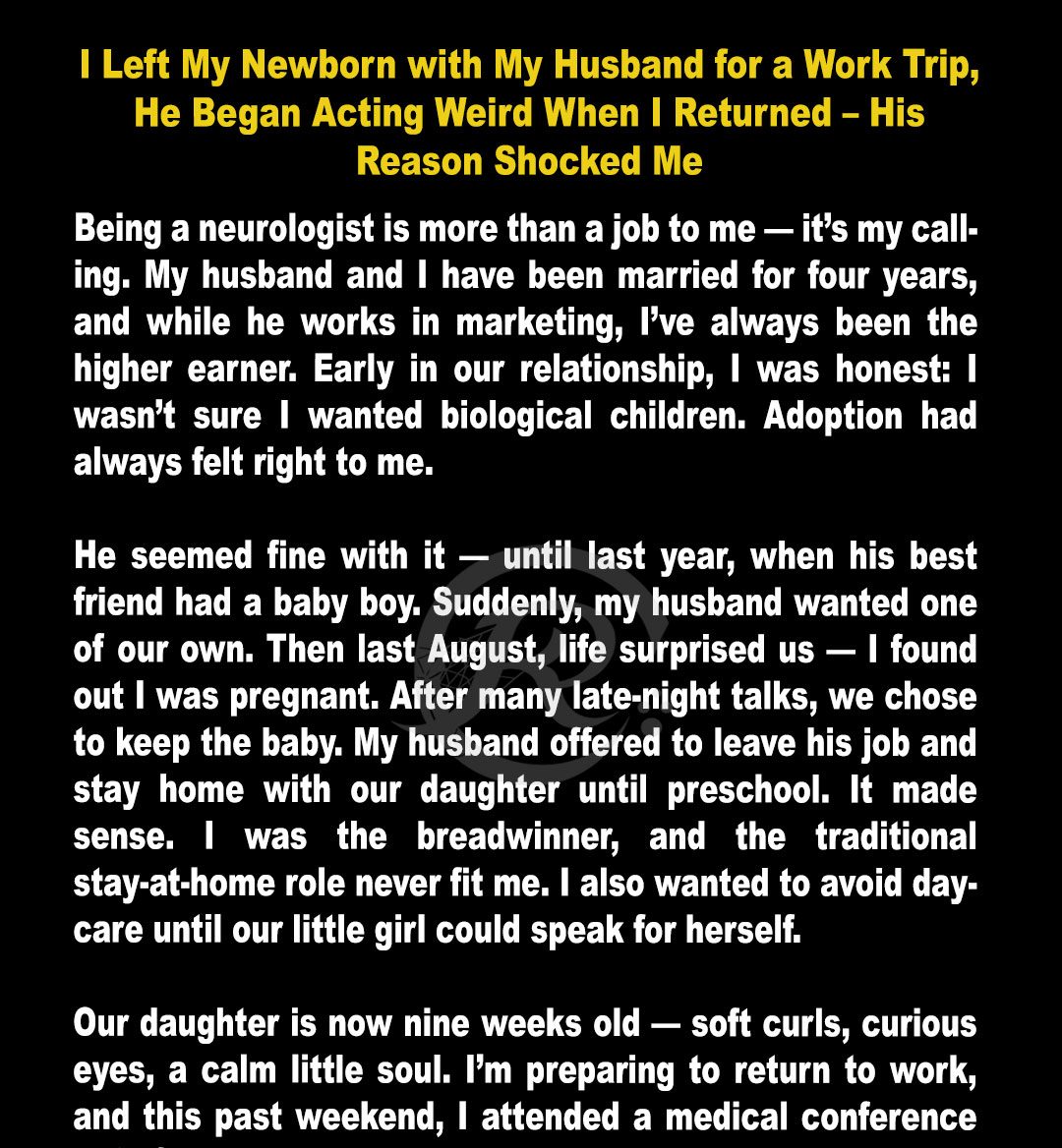 I left my newborn with my husband during a medical conference, but when I returned, his behavior was off — withdrawn, and overwhelmed. As the tension between us escalated, I feared our marriage might collapse under the weight of unfulfilled promises and the strain of new parenthood.