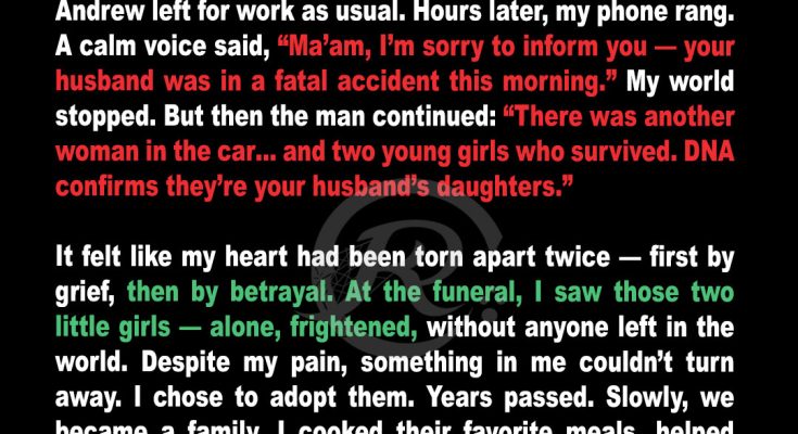 “Ma’am…” The officer’s voice softened. “There’s more you need to know. There was another woman in the car who also died… and two surviving daughters. Records in our database confirm they’re Andrew’s children.”