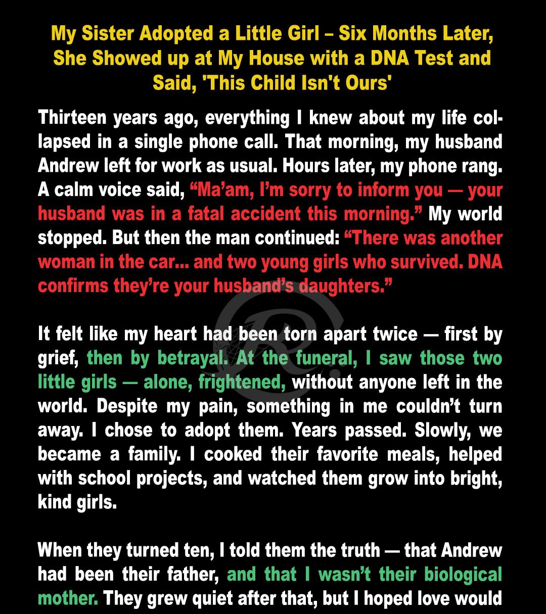 “Girls,” I started, my hands trembling. “There’s something about your father and how you came to be my daughters that you need to know.”