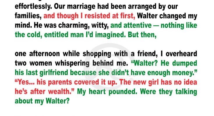 “Walter?” one of them asked, her tone edged with disbelief. “He’s going to marry her?! The same Walter that dumped his last girlfriend because she wasn’t rich enough?”
