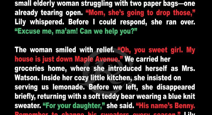 “Hi,” I said slowly. “My name’s Sarah. My daughter and I helped a woman named Mrs. Watson carry groceries a few weeks ago. She gave us a teddy bear and… we found your number inside it.”