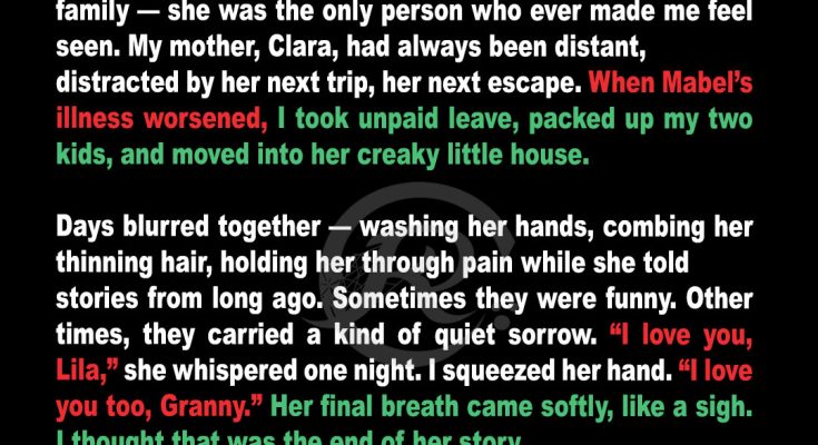 She wasn’t just a grandmother. She was my safe place, my compass, and the one person in my life who saw me clearly and never once looked away. My mother, Clara, spent most of my childhood chasing her next thrill — her career, her relationships, and even her reflection in a mirror.