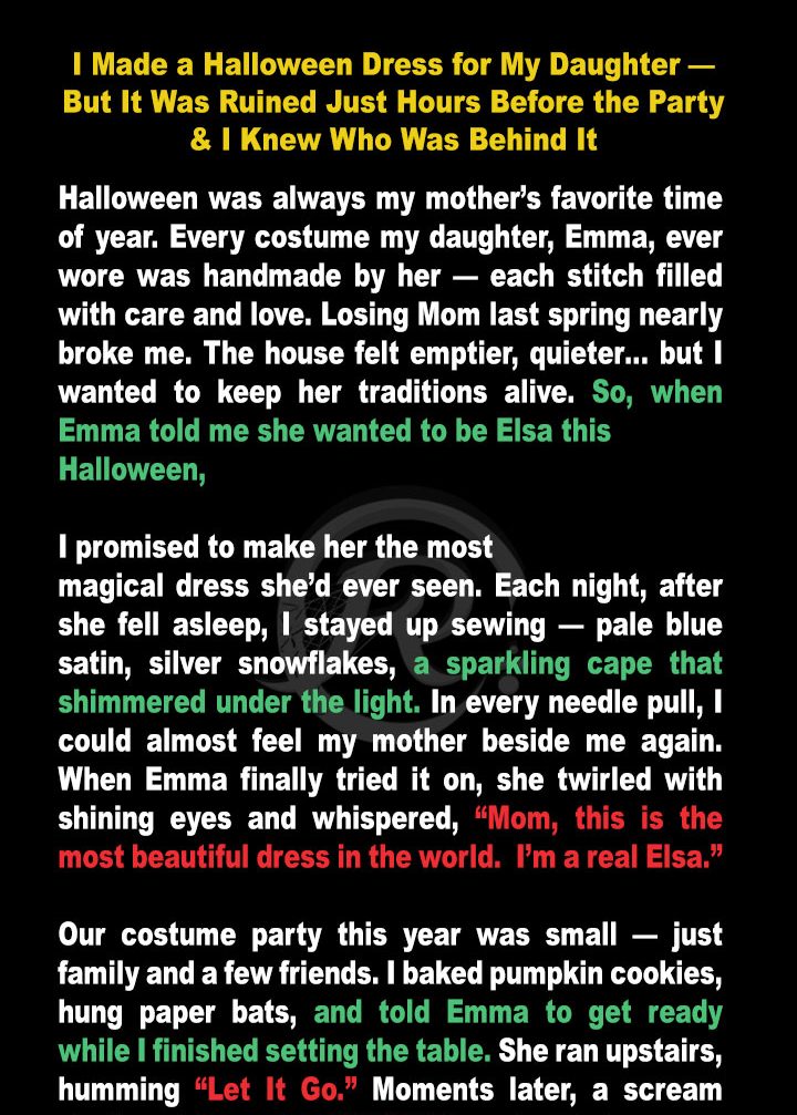 Halloween was always magical in our house — handmade costumes, warm traditions, and three generations of women stitching joy into every thread. But this year, just hours before my daughter’s big moment, everything unraveled in a way I never saw coming.