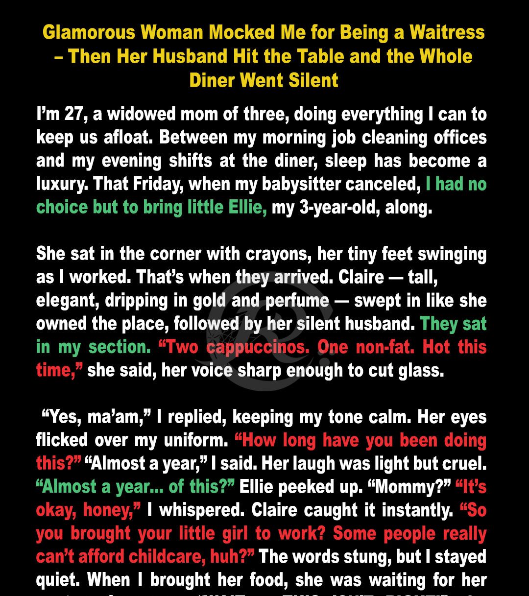 Glamorous Woman Mocked Me for Being a Waitress – Then Her Husband Hit the Table and the Whole Diner Went Silent