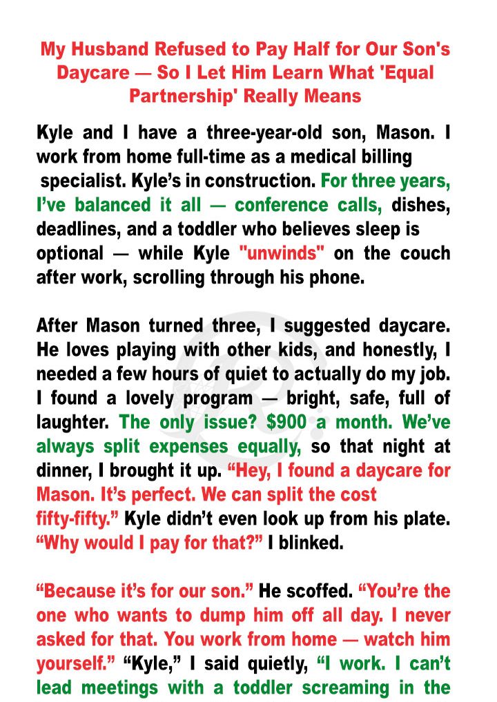 My Husband Refused to Pay Half for Our Son’s Daycare — So I Let Him Learn What ‘Equal Partnership’ Really Means