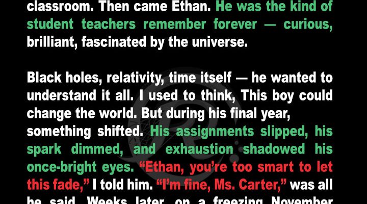 From the first day, he was different. While other students groaned about equations and complained that physics was too hard, Ethan lit up. He’d lean forward in his seat when I explained complex theories, his eyes bright with curiosity.