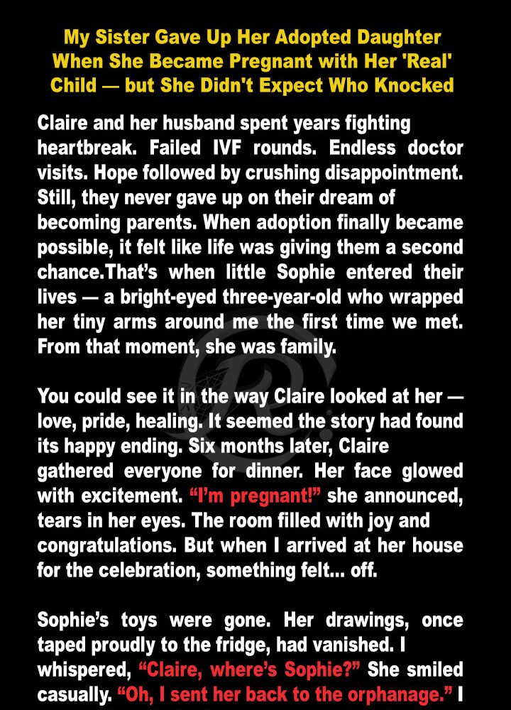 My Sister Gave Up Her Adopted Daughter When She Became Pregnant with Her ‘Real’ Child — but She Didn’t Expect Who Knocked on Her Door