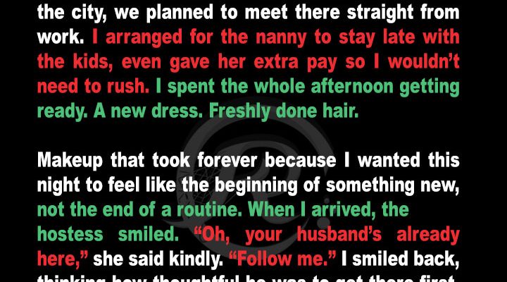 Our 10th wedding anniversary wasn’t meant to be grand — we just wanted to have a quiet dinner at the restaurant where Liam had proposed. It was our place. We even had a preferred table, near the window with the dripping candle wax and uneven brick.