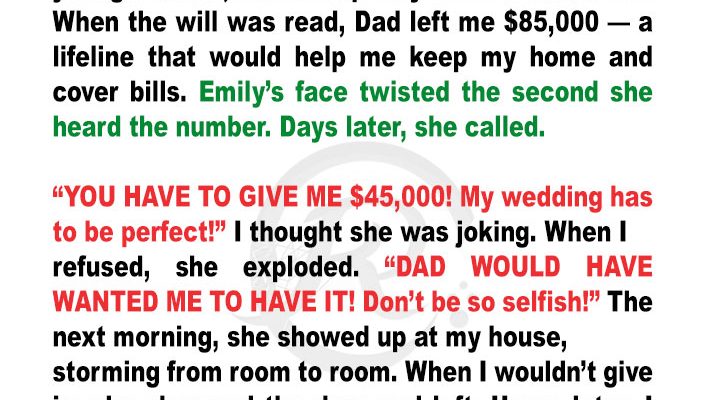 “And this,” I said stubbornly, “was Dad’s last gift to me. His will was crystal clear, Emily. He wanted me to have this. He wrote it in his own hand. Maybe you should have been a better daughter.”