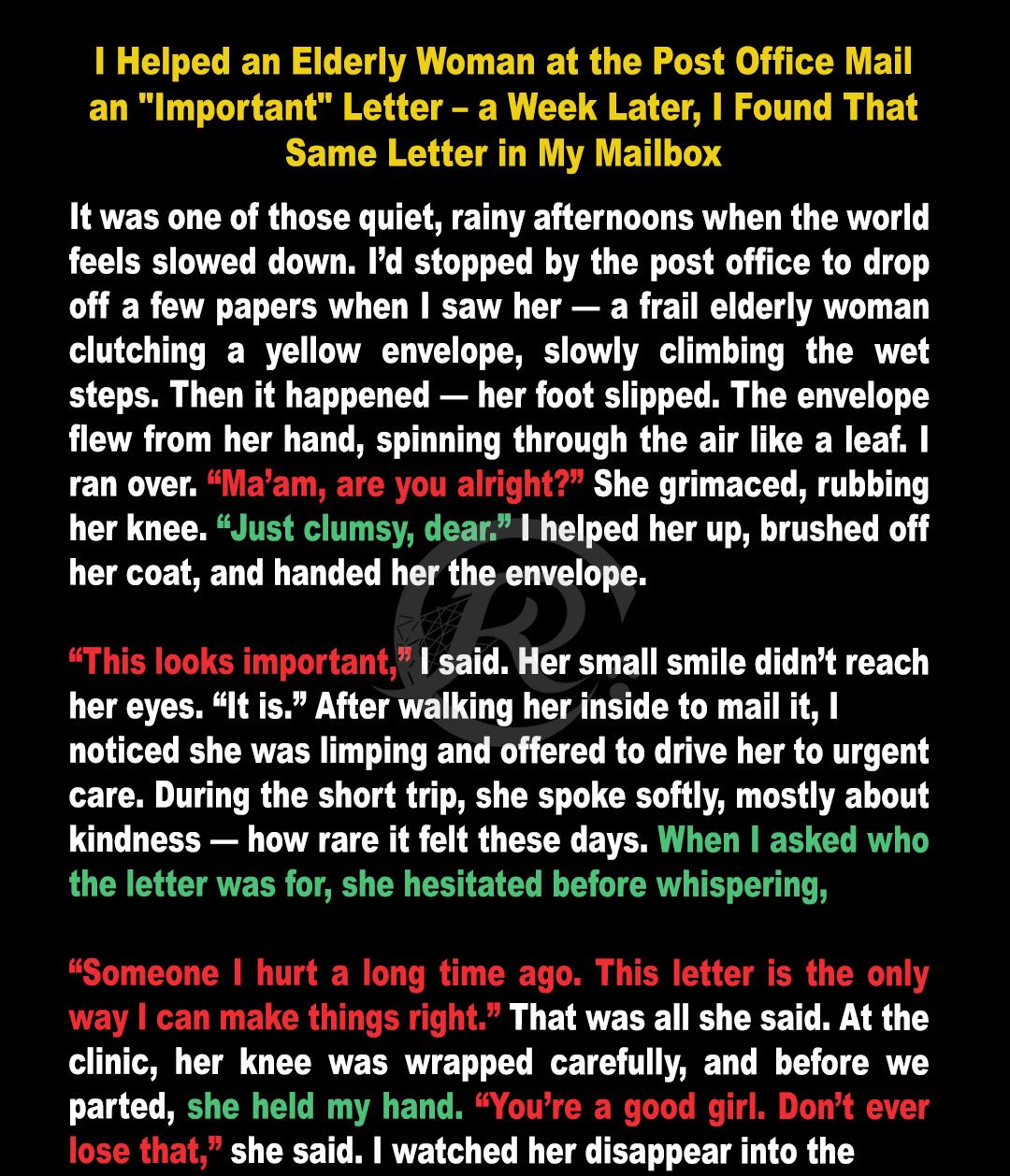 I Helped an Elderly Woman at the Post Office Mail an “Important” Letter – a Week Later, I Found That Same Letter in My Mailbox