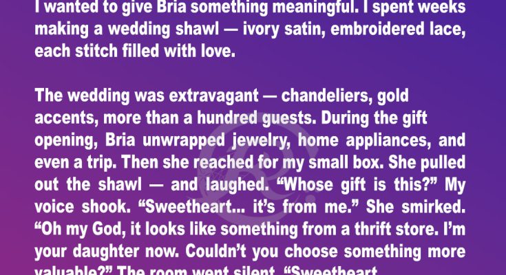 “It’s not just a shawl,” I said quietly, hating how my voice shook. “I made it from the same lace that lined my wedding dress. I thought you might wear it for luck. For…”
