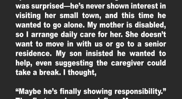 As I drove, I remembered other details, things I’d dismissed at the time. A week into his stay, I called, wanting to check on my mother directly. He’d answer, cheerful but too fast, like he was steering the call. “Hey, Mom! Grandma’s asleep. She said she’s too tired to talk tonight, but I’ll tell her you called.”