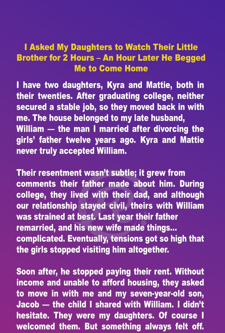 I Asked My Daughters to Watch Their Little Brother for 2 Hours – An Hour Later He Begged Me to Come Home