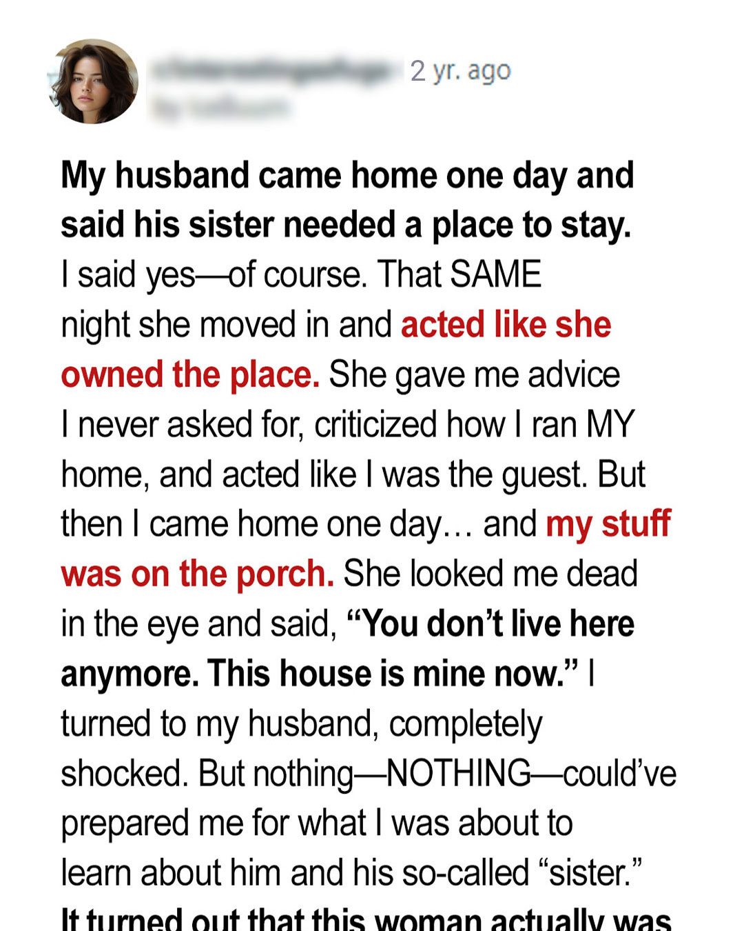 I will never forget the day I pulled into the driveway and saw my belongings dumped on the porch. Everything was stuffed into garbage bags and dumped on the porch like I was nothing. When I stepped inside the house, I saw my husband’s sister, Sophia, standing there smirking like she owned the place.