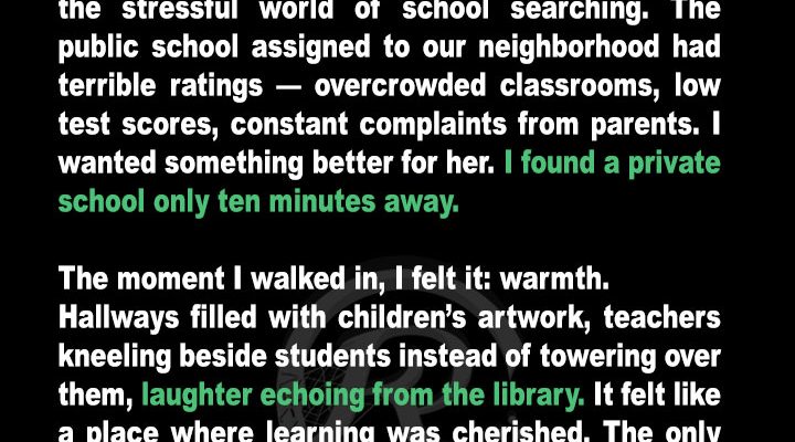 “Why waste money on that?” he muttered. “The public school’s fine. It’s five minutes away, and it’s free.”