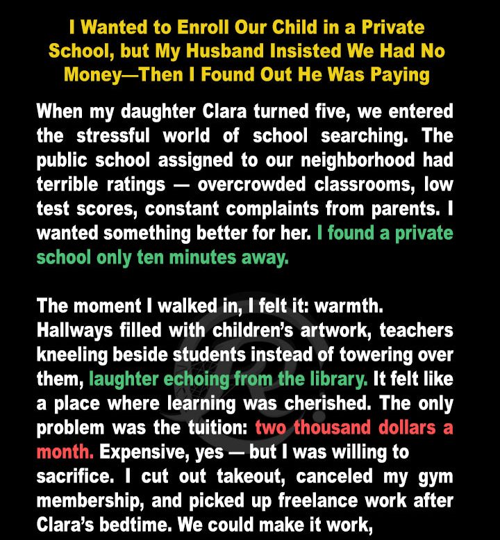 My husband said private school wasn’t in our budget. But when I discovered who he was secretly supporting, it uncovered a part of his past I never knew existed.