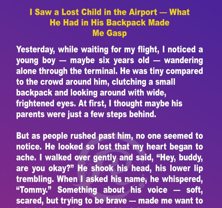 When I saw a young boy wandering alone in the airport, I couldn’t just sit there. He was scared and clutching his backpack like it was all he had left. I offered to help, but what I found inside his bag left me speechless and set off a chain of events I never saw coming.