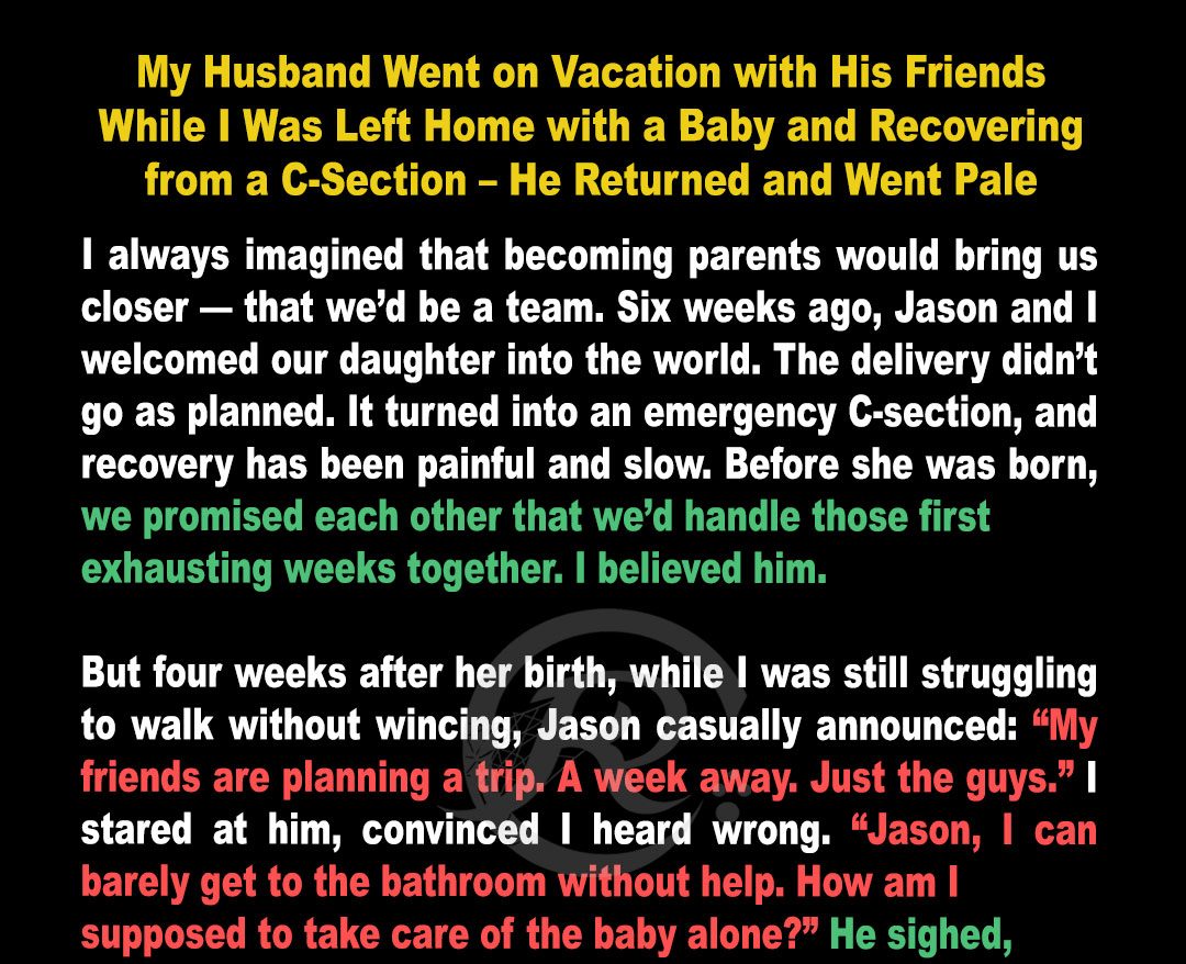 My Husband Went on Vacation with His Friends While I Was Left Home with a Baby and Recovering from a C-Section – He Returned and Went Pale