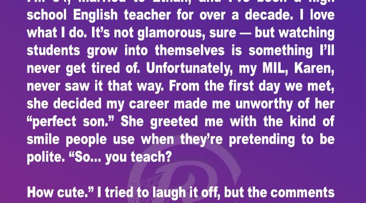 After that, every family gathering became a minefield. Karen had a talent for slipping in jabs that sounded like compliments until you actually listened to them.