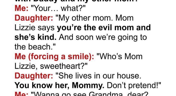 “Mom Lizzie says you’re the evil one,” she shrugged. “She’s the kind mom. And soon, we’re going to the ocean with Daddy.”