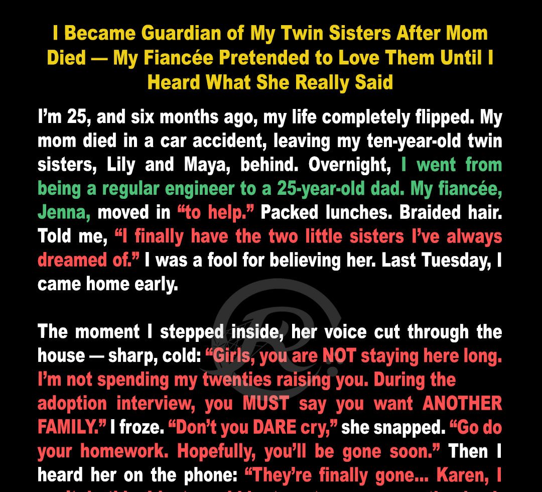 I Became Guardian of My Twin Sisters After Mom Died — My Fiancée Pretended to Love Them Until I Heard What She Really Said