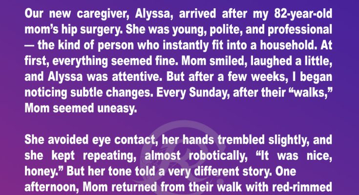 I thought hiring a young caregiver for my 82-year-old mom would finally let me relax a little—until a strange pattern on their Sunday walks and a few seconds of doorbell audio made me realize there was something going on between them that no one was telling me about.