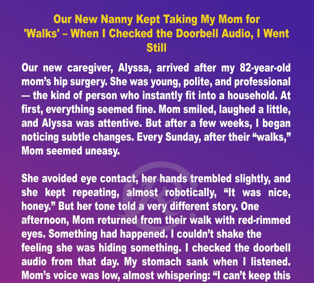 Our New Nanny Kept Taking My Mom for ‘Walks’ – When I Checked the Doorbell Audio, I Went Still